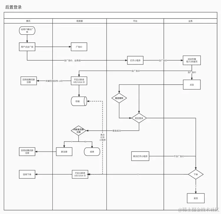 登录前置,是从小程序options中携带的gdt_vid || clickid , 判定是否是朋友圈广告进入的,若有值则调用接口,进行数据回传。