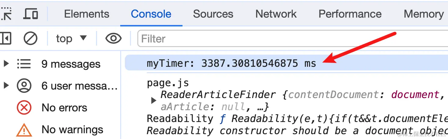 用于测量代码执行所花费的时间。这个方法配合 console.timeEnd() 使用,能够非常方便地计算代码段的执行时间