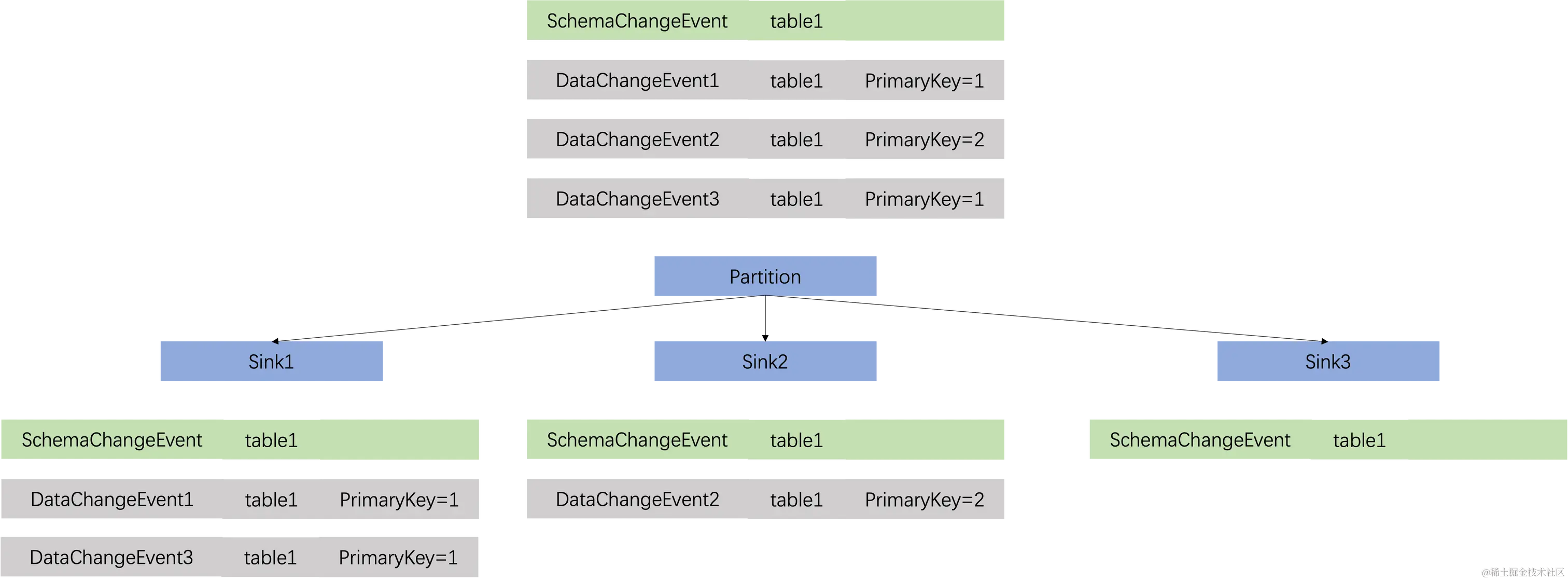 // Partition DataChangeEvent by table ID and primary keys