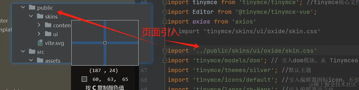 import 'tinymce/skins/ui/oxide/skin.css'//样式