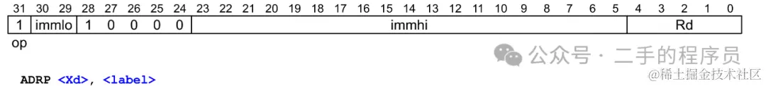 首先adrp将一个21位有符号立即数左移12位,得到一个33位的有符号数(最高位为符号位),接着将PC地址的低12位清零,这样就得到了当前PC地址所在页的地址,然后将当前PC地址所在页的地址加上33位的有符号数,就得到了目标页地址,最后将目标页地址写入通用寄存器。