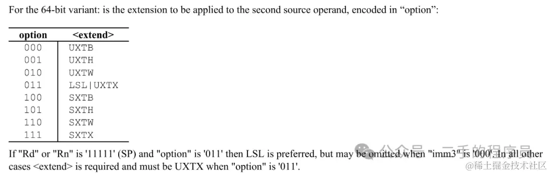 这个指令稍微要复杂一点,它根据 option 的类型,来决定如何对 Xm 寄存器做扩展。