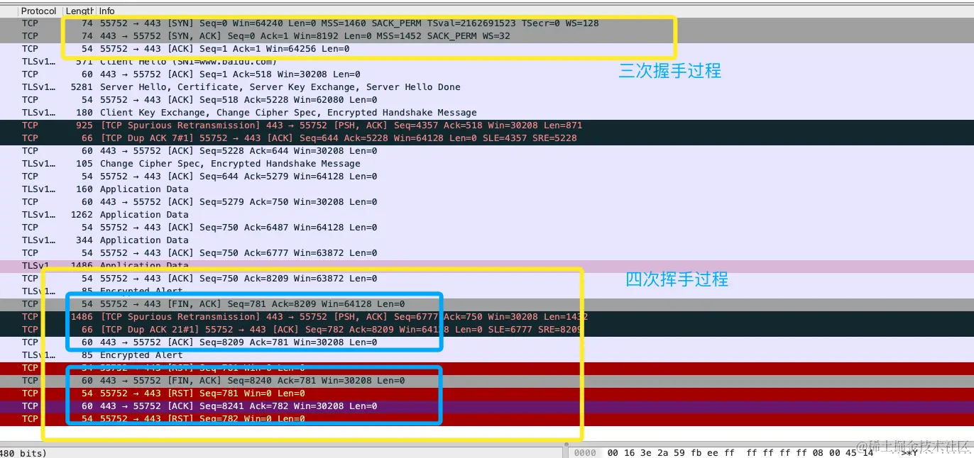 那么具体的请求是什么样的呢?使用 TCPDump + WireShark 对 TCP 三次握手与四次挥手展示