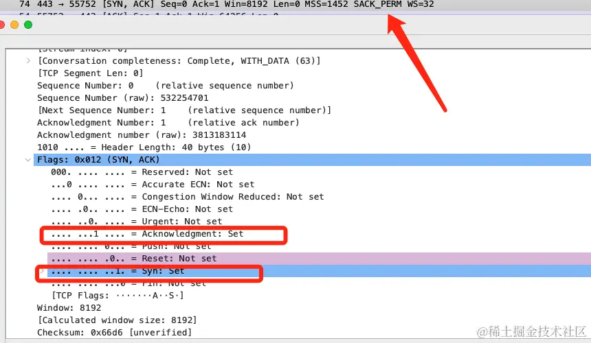 - 服务端响应并发送请求标志ACK = 1,SYN = 1