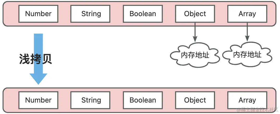 - 如果属性是引用类型,拷贝的就是内存地址
