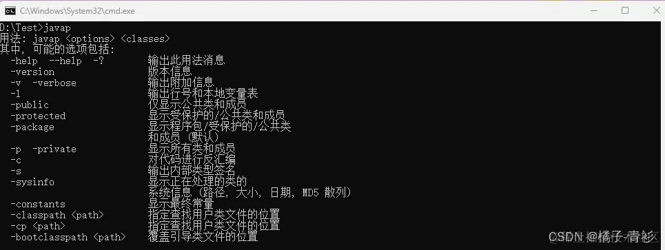 输入javap -v 字节码文件名称查看具体的字节码信息(jar包需要先使用 jar –xvf 命令解压):