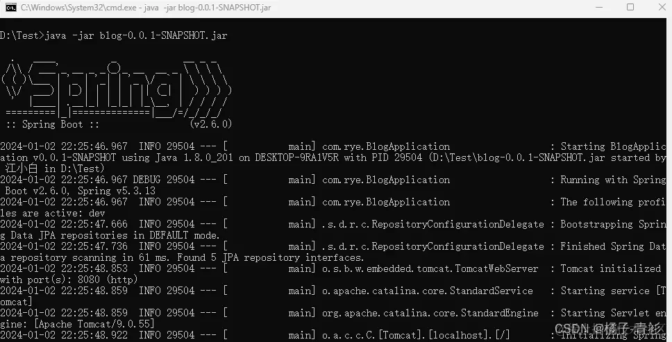 java -jar blog-0.0.1-SNAPSHOT.jar