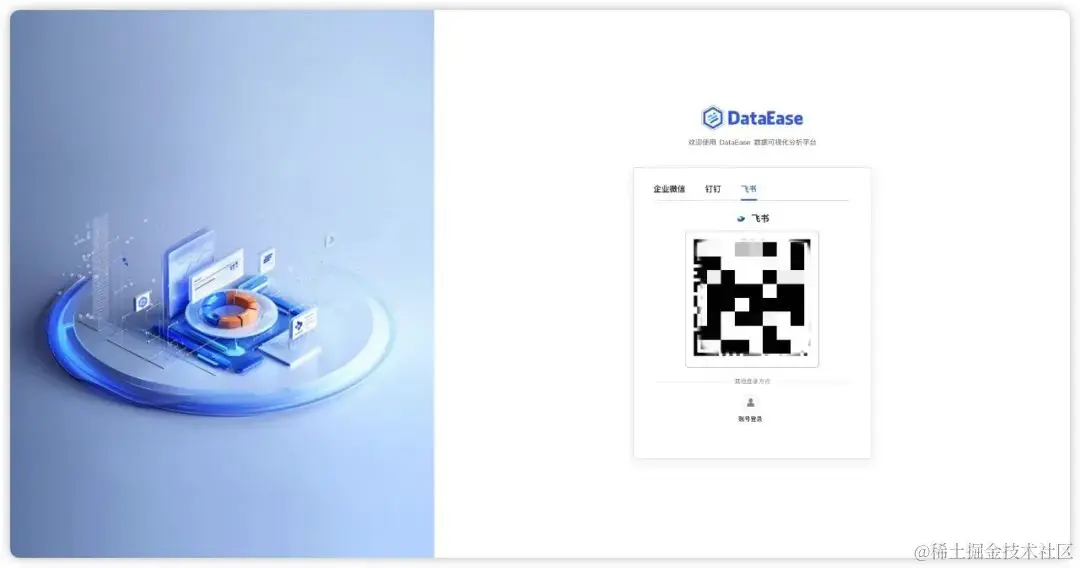 DataEase v2.4.0版本新增扫码登录功能,支持用户以企业微信、飞书、钉钉扫码的方式登录到DataEase,满足了更多企业用户的访问登录需求。