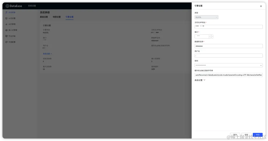 在以往版本中,DataEase默认将API数据源的数据和Excel数据源的数据都存放在DataEase运行数据库中。支持了引擎设置后,用户可以将这部分业务数据单独指定存放到自己的数据仓库里,不仅可以做到平台数据与业务数据的分离,也能进一步保证数据的安全性。