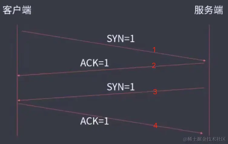 server端向client端回发一条确认连接请求的信息ACK = 1。由此,成功建立了一条客户端向服务端发送数据的通道