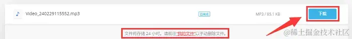 步骤4:转换完成后,您将看到一个下载链接,点击它可以下载转换后的MP3音频文件到您的设备中。