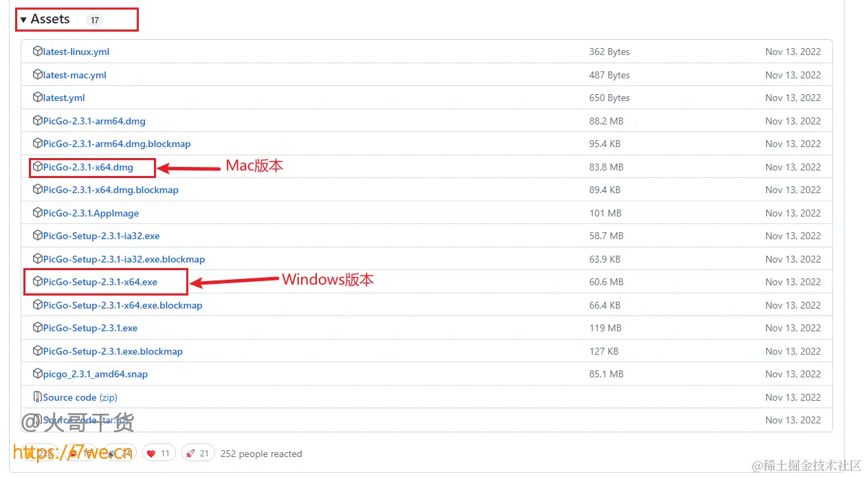在打开的下载页面中,请继续向下滚动至“Assets”部分。在这里,您将看到针对不同操作系统的PicGo版本。请根据您的电脑系统(如Windows、macOS或Linux)选择并下载对应的版本。确保选择与您的系统兼容的版本,以确保软件的正常运行。