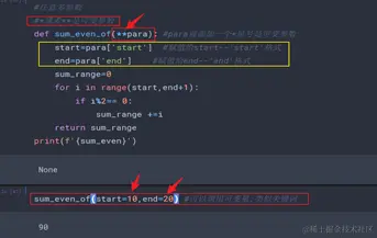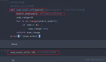 *或者**是可变参数,para是一个可变参数,一个星号 我们传入(6,10)赋值于start,end参数通过=解包操作完成赋值.