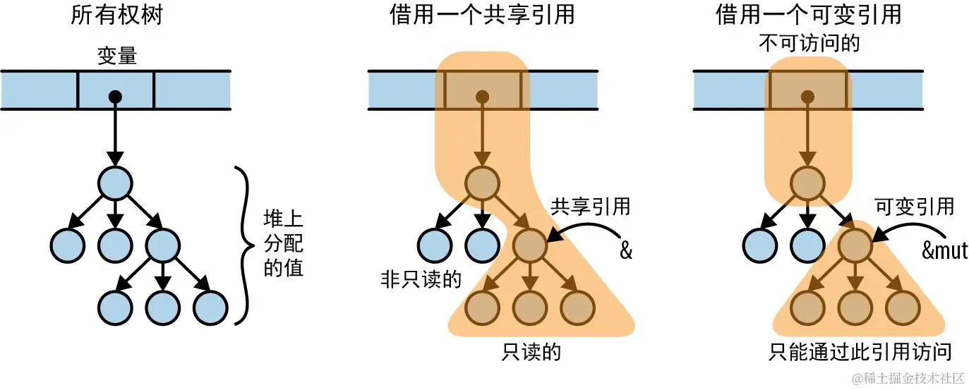图 5-9:借用引用会影响你对同一所有权树中的其他值执行的操作