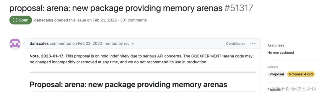 上年我们有讨论过关于 Go arena 手动管理内存的相关提案。一开始还高歌猛进,但没想到后面由于严重的 API 问题(想把 arena 应用到其他的标准库中,但会引入大问题):