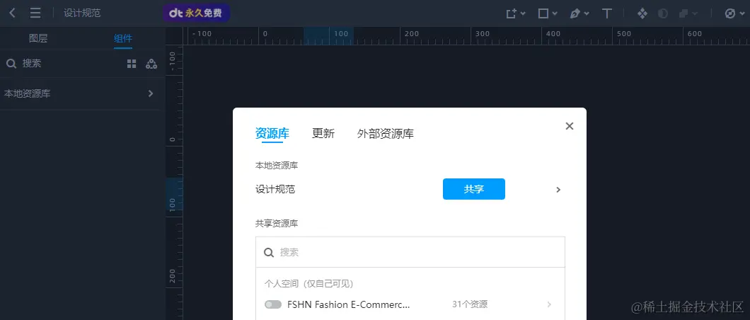 当设计系统搭建完后,摹客DT作为一款高效的在线设计工具,可以轻松一键共享资源同步到团队内,实时共享设计资源~