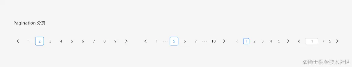 分页器主要有带指定页面输入框、无输入框、带总计数、带页面显示量、页面过多等情况,在设计时,需要注意不同场景的设计规范。