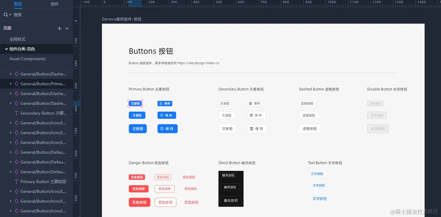 在摹客DT中可以分类将按钮制作为组件,此时创建组件,需要定义组件命名规范,便于后续查找复用等。