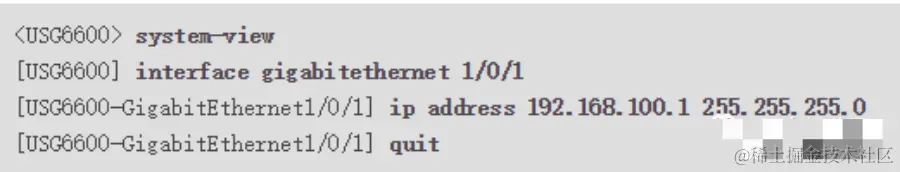 配置连接交换机的接口对应的IP地址。