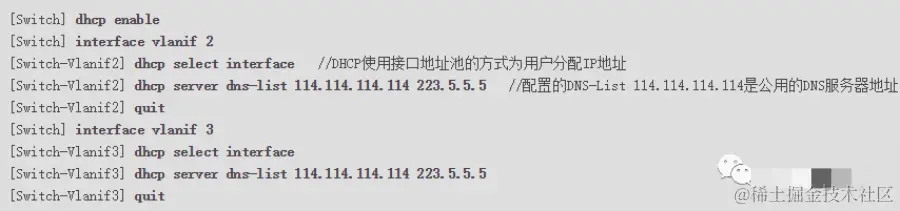 - 配置交换机作为DHCP服务器,为用户分配IP地址。