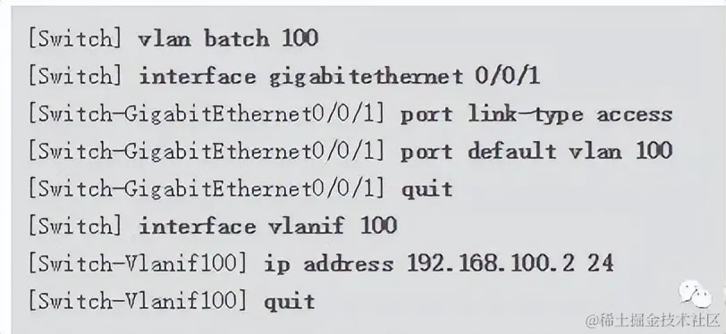 [Switch-GigabitEthernet0/0/2] port link-type access//配置接口接入类型为access