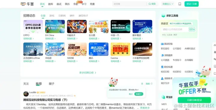 虽然是一个偏向求职的网站,但是也有着极其完善的题库系统,以及前面求职者总结的面试经验(被称为应届生的求职天堂)。用于刷面试题也好,还是说对某个知识进行全面的练习,都很nice!它的大名相信大家都多多少少有所耳闻。