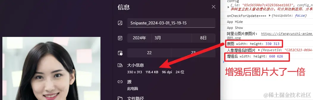 因为人像增强后的图片不是上海区域的,而是这个: