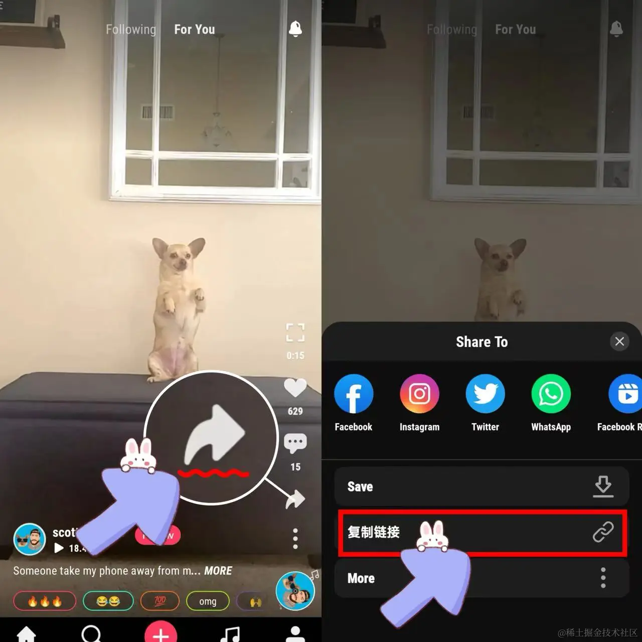 首先找到喜爱的Triller视频点击右下角的“箭头”分享图标,然后点击“复制链接”