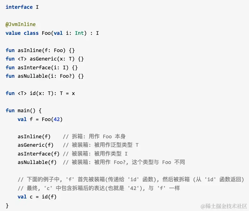 Int在java中即可以表示为基础类型int也可以表示为对象类型Integer,内联类在kotlin中也是会对每个内联类保留一个 包装. 内联类的实例在运行期可以表达为这个包装, 也可以表达为它的底层类型.