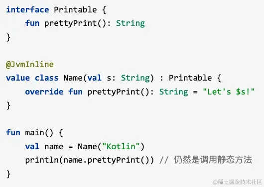 内联类除了在kotlin中调用也支持在java中调用,其语法如下:
