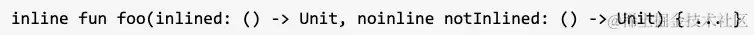 禁用内联函数:针对高阶函数的参数是多个参数类型(lambda表达式/匿名函数)时,如果某一个参数不希望内联,则通过关键字noinline 声明这个参数类型则这个参数不执行内联。