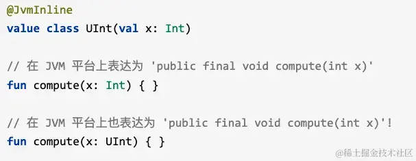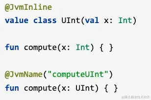 内联类优先识别基础类型,则在使用过程中内联类参数和基础变量参数的函数很容易混淆(编译成为java问件时),此时kotlin在内联类参数的函数编译时通常为其函数名称添加hash码作为后缀,进而区分这二者函数。