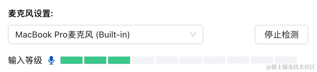 提示:在检测麦克风之前,需要获取麦克风权限,并且获取到你正在使用的麦克风