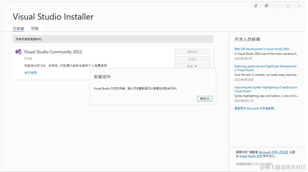 - 安装完成,弹出 “安装完毕” 对话框。 点击确定。
