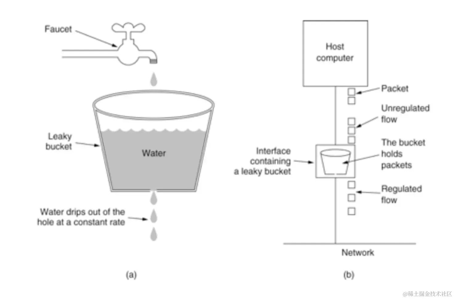 根据限流判断的结果,对于需要进行流量控制的请求通常有两种方式:一种是直接拒绝请求,返回 HTTP 状态码 429;另一种是阻塞请求,控制请求速率,并在一段时间后再进行后续请求操作。常用的算法是漏桶算法。