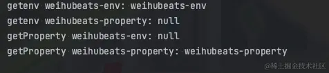 print("getProperty weihubeats-env", System.getProperty("weihubeats-env"));