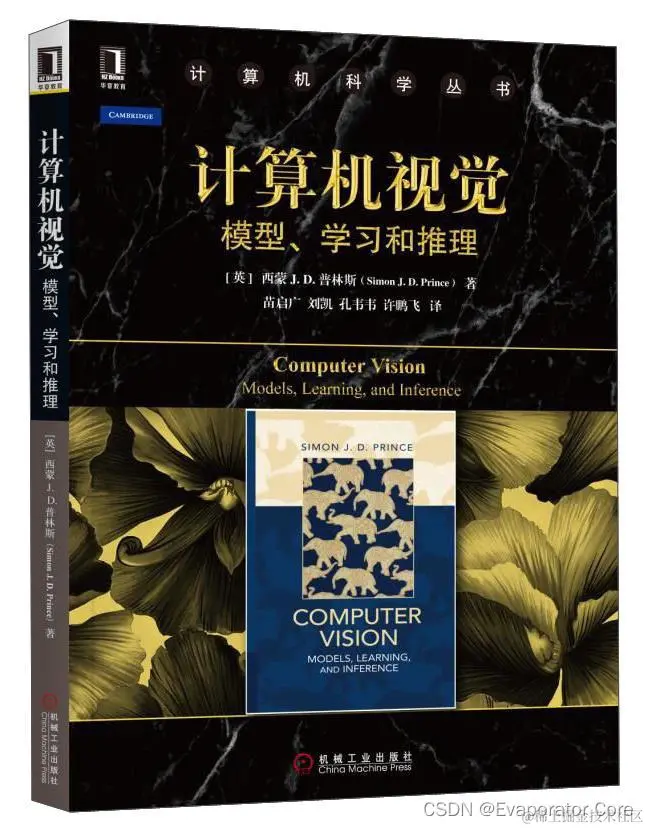 4.《计算机视觉:模型、学习和推理》(Computer Vision: Models, Learning, and Inference):作者Simon J.D. Prince,是一本计算机视觉领域的经典教材。该书涵盖了计算机视觉的基本概念和方法,包括图像处理、特征提取、分类和跟踪等。