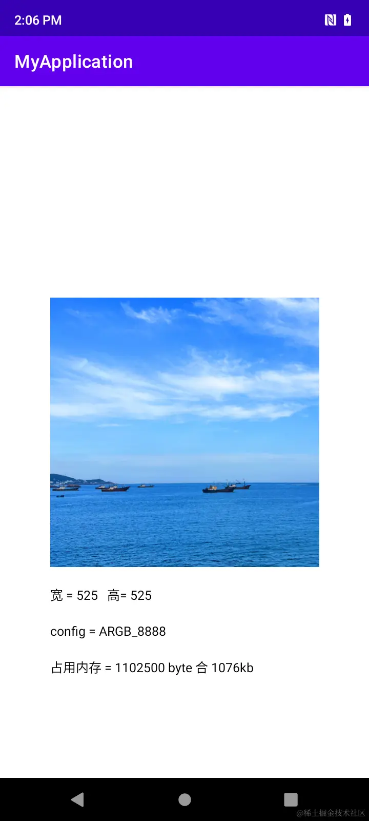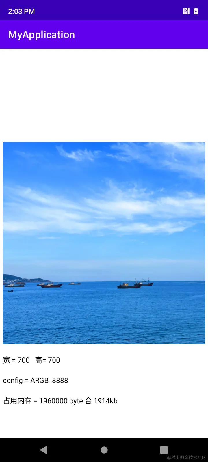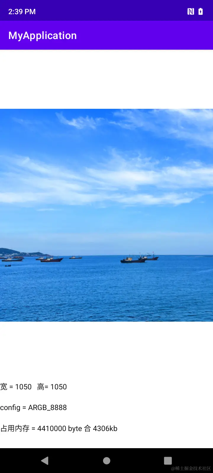 第三个因素为Bitmap.Config下的值,默认使用 Config.ARGB_8888,每个像素占4个字节。