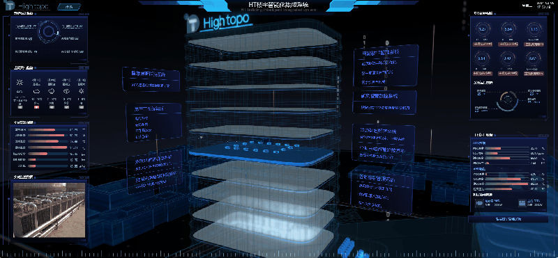 可视化界面内点击任意楼宇,即可进入楼层界面查看楼宇分层信息、楼层的格局、设备的分布等。在大楼的侧边显示智慧楼宇管理系统、冷源智慧管控系统、新风智慧管控系统、智慧照明管控系统等对应的系统,当选择具体系统的时候,楼宇外结构进行虚化,突出要显示系统的结构。当进入到楼层视角,可以展示所有楼层 3D 效果图,依据物理环境展示房间、走廊、物品位置。标注每个房间名称,如办公室、会议室、会客厅等。