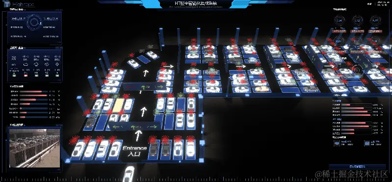智能停车场以感应 IC 卡或 ID 卡为载体,通过智能设备使感应卡记录车辆及持卡人进出的相关信息,同时对其信息加以运算、传送并通过字符显示、语音播报等人机界面转化成人工能够辨别和判断的信号,从而实现计时收费、车辆管理等目的。图扑 HT 停车场管理系统配置包括停车场控制器、自动智能道闸、车辆感应器、地感线圈、通讯适配器、摄像机、MP4NET 视频数字录像机、传输设备等。