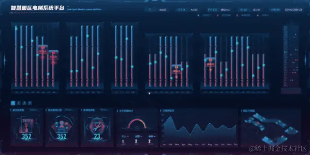 可通过 HT 2D 可视化技术,“一张图”式切换园区电梯的运行参数,输出不同维度的数据解释。