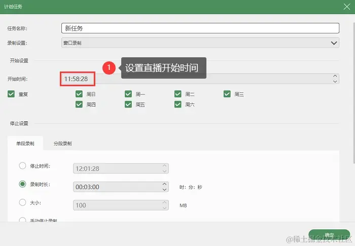 步骤3:如果您想录制的直播还未开始,可以提前添加一个录制任务,设置好直播开始的时间,软件就会自动开始录屏。