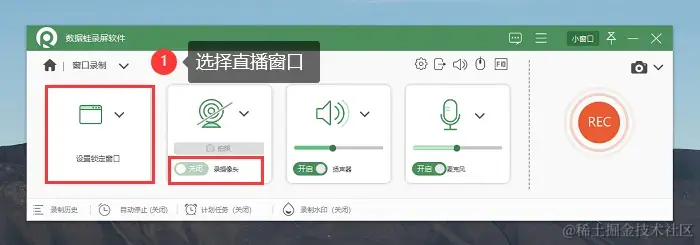 步骤2:在窗口录制模式中,选择我们提前打开的直播内容窗口,如果需要录入人脸,记得在当前页面打开摄像头。