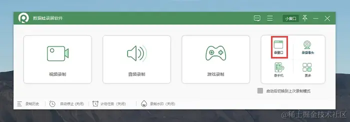 步骤1:打开数据蛙录屏软件,根据需要选择录制模式,如 “窗口录制” 、 “视频录制” 等,录制直播推荐使用窗口录制模式。