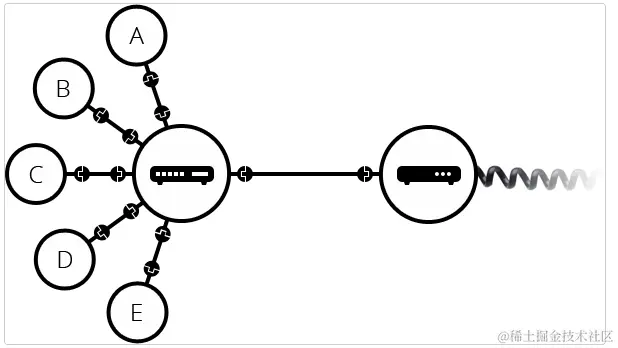 在你家路由器的连接背后可能是这样子的,在现代家庭和小型企业网络中,路由器和调制解调器通常被组合成一个设备,称为路由器/调制解调器或网关。这种设备允许多个设备(如电脑、手机、智能电视等)通过无线或有线方式连接到局域网,并将该局域网连接到互联网。