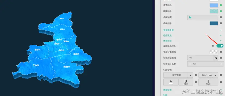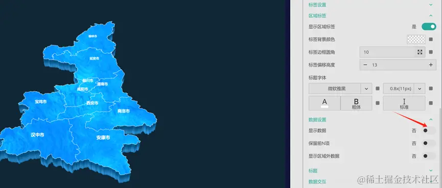 开启显示,则显示对应的数据标签,可以在这里设置字体样式。