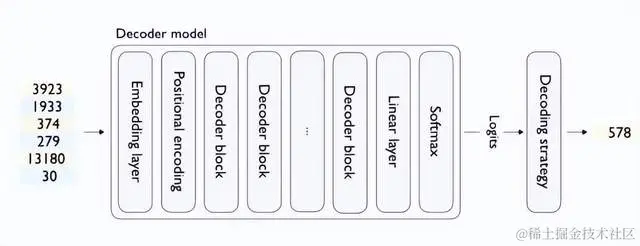 如果要生成多个词元呢?使用基于Transformer的解码器,从一个输入文本序列(通常称为提示(prompt) )中生成文本(通常名为完成(completion) )通常包含以下步骤: