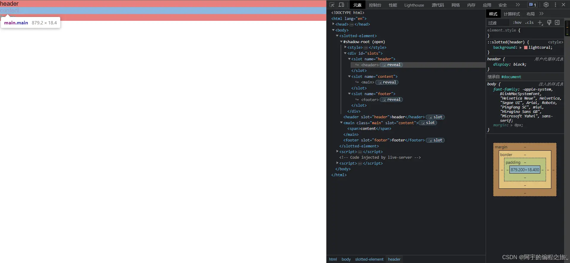 ::part伪元素选择器是Shadow DOM中的选择器之一,它可以为自定义元素内部的特定部分(一般是子元素)定义样式,结合上面的伪类选择器host我们可以使用它选择当前宿主标签下的某个部分的子元素,并设置该部分独有的样式,思考下面的代码: