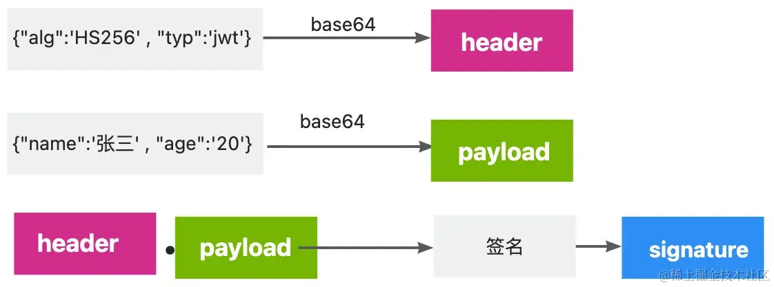 - 拼接Header和Payload:将Header和Payload使用点号(.)进行拼接。