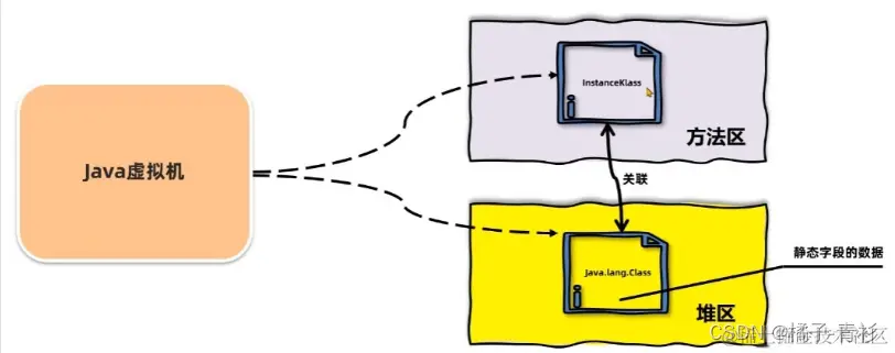 - 在堆中创建一个java.lang.Class对象。这个对象的作用是提供一种在Java代码中访问类的信息的方式,以及存储静态字段的数据(从JDK8开始)。开发者通常只需要通过这个Class对象来访问类的信息,而不需要直接访问方法区中的所有数据。这种设计使得Java虚拟机能够更好地控制开发者对数据的访问范围,增强了安全性。
